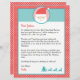 Personalisieren Sie diesen Brief vom Weihnachtsmann mit dem Namen und Text Ihres Kindes. Dieses Design hat eine Santa-Gesicht, eine Silhouette des Weihnachtsmannes, der mit seinen 3 Rentieren und dem weißen Polka Punkte roten Hintergrund im Schlitten sitzt. Auf der Rückseite ist die Farbseite der Schrift Frohe Weihnachten und eine Elf mit einem Bonbons Stock.
