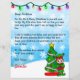 Fügen Sie dem personalisierten Brief des Weihnachtsmannes den Namen Ihres Kindes hinzu. Niedliche Cartoon-Grafik eines kleinen Elfs stehend von einem Weihnachtsbaum und einer Bonus-Farbseite auf der Rückseite.