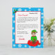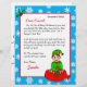 Fügen Sie dem personalisierten Brief des Weihnachtsmannes den Namen Ihres Kindes hinzu. Niedlicher Elf sitzt auf einer Tüte Spielzeug. Farbseite auf der Rückseite.