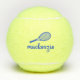 Blaue, Personalisierte Tennisbälle, die mit individuelle Name oder Text bedruckt sind, in einem modernen, trendigen Schriftart mit Kalligraphie und einem einfachen Tennisschläger-Monogramm. Jeder weibliche Tennisspieler würde das elegante Aussehen dieser modernen mit Monogramm Übungsbälle als Geschenk schätzen.