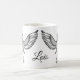 Personifizieren Sie diese Tasse, die einen Schwarzes mit einer Kappe bedeckten Chickadee kennzeichnet, der im stylized Pointillism gezeichnet wird, der von der traditionellen Schnitzereiarbeit erinnernd ist. Einfache und elegante, Originalvorlage durch gebürtigen Künstler S. Coxwell Alaskas