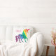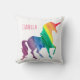 Personalisiertes cooles RegenbogenUnicornwatercolor-Spaß-Kissen. Entwurf auf beiden Seiten. Personifizieren Sie diesen Spaß und bunte Unicorngeschenk im hellen rosa Schriftart. Silhouette von Unicorn in einem Regenbogen von Watercolor Brushstrokes von Rotem, von Orange, von Gelbem, von Grünem, von Blauem und von Lila. Weißer Hintergrund lässt die hellen Farben heraus schön stehen. Spaßgeschenk für Kinder, Tweens und Teens die Liebe Unicorns und magische Geschöpfe. Bunt, modern und stilvoll.