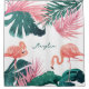 Personalisierter Duschvorhang - mit Flamingos und tropischen Blätter.