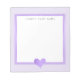 Ein violetter Rahmen und ein Herz, der einen violetten Hintergrund überlagert. Personalisieren Sie das Notizblock mit Ihrem eigenen Namen oder Text.