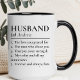 Feiern Sie Liebe, Lachen und lebenslange Partnerschaft mit diesem personalisierten "Husband Definition"-Becher — eine herzliche und unterhaltsame Art, den Mann zu ehren, den Sie lieben. Mit einem charmanten Design im Definition-Stil ist dieser Becher ein bedeutungsvolles Erinnerungsstück für Ehemänner, Frischvermählte und Paare, die besondere Meilensteine feiern. Perfekt als Hochzeitsgeschenk, Jahrestagsgeschenk, Geburtstagsgeschenk oder Überraschung für Frischvermählte, ist dieser personalisierte Becher ideal für Ehefrauen, die ihrem Mann ein Geschenk machen möchten, oder für jeden, der nach einem durchdachten Geschenk für Paare sucht. Fügen Sie Namen oder ein besonderes Datum hinzu, um ihn einzigartig zu machen. Ob er für morgendlichen Kaffee, abendlichen Tee oder gemütliche Wochenenden zu zwe