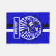Ein Sportdesign mit einem Eishockeyspieler in Blau und Weiß mit schwarzem Trimm mit einem Akzent mit anpassbarem Text für den Namen des Eishockeyspielers, Hockeytrainers oder Eishockeyfans, um ein einzigartiges und personalisiertes Hockeygeschenk zu schaffen.