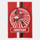 Eishockeyspieler in Rot und Weiß mit schwarzem Trick können mit Ihrem Namen vollständig personalisiert sein, um einen einzigartigen Hockey-Spieler oder ein Fangeschenk zu kreieren