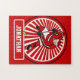 Eishockeyspieler in Rot und Weiß mit schwarzem Trick können mit Ihrem Namen vollständig personalisiert sein, um einen einzigartigen Hockey-Spieler oder ein Fangeschenk zu kreieren