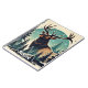 Stilisierte Darstellung eines Elchs mit Geweih inmitten von Kiefern unter sterniger Kulisse, die wilden Charme ausstrahlt.