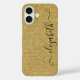 Personalisieren Sie diesen goldenen Glitzer iPhone 16 Fall mit Ihrem Namen in einem eleganten Skript-Schriftart. Erhältlich in allen aktuellen Größen von iPhone und Samsung Hüllen.