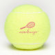 Personalisierte Tennisbälle mit rosa bedrucktem individuelle Name oder Text in einem femininen gürtlichen und modernen hübschen Drehbuch-Schriftart und einfachem Tennisschläger-Monogramm. Jeder weibliche Tennisspieler würde den eleganten Look dieser modernen mit Monogramm Übungsbälle schätzen.