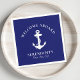 Chic und modern im nautischen Stil gehaltene Servietten für die Gäste Ihres Bootes, die eine weiße Abbildung eines Ankeres auf marinebasischem Hintergrund aufweisen. Sie können den Text "Welcome Abard" und den Namen und die Lage Ihres Bootes in eleganter weißer Typografie personalisieren.