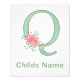 Wasserfarbenbrief mit schönen Blumen. Ideal für Babyzimmer. Überprüfen Sie die passenden Designs, um den Raum Ihres Kindes schön zu koordinieren.