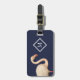 Gepäckanhänger mit größerem Flamingoentwurf und kundengerechtem Monogramm auf Front und Namen- und Zahlan Rückseite.