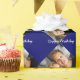 Stellen Sie Ihre eigene kundenspezifische Geschenkverpackung mit dieser bedienungsfreundlichen Schablone, die einen Marineblauhintergrund mit Ihrem eigenen persönlichen Unternehmens hat, Geschäft oder geliebten Bild in ihm her. Ideal für alle speziellen Ereignisse, Ansammlungen, Funktionen und Gelegenheiten.