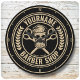 Personalisierter Friseurladen Rockabilly Skull and Scissors, mit bärtigen Hipster Skelett Haarsalon Design. Anpassen mit Ihrem Namen oder benutzerdefinierten Text.