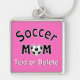 Personalisierter Fußball-Mama-Schlüsselanhänger, Fußball-Herz, Hintergrund und Text in Ihren Farben und Text oder Löschung. Sie oder Designer Linda: 239-949-9090, kann die rosa und weißen Hintergrund oder Text FARBEN zu allen möglichen Farben ändern. Große Geschenke für Fußballmammen, Fußballteam-Mammageschenke für sie. Designer Linda kann die Fußball-Mama ändern, die Geschenke zu Ihren Teamfarben oder zu ihren Lieblingsfarben entwerfen.