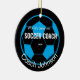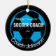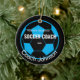 Fügen Sie den Namen oder die spezielle Nachricht Ihres Trainers zu einem Trainer auf diesem vollständig anpassbaren Ornament hinzu. Ein tolles Weihnachtsgeschenk, ein Coach-Wertgeschenk oder ein Jahresende-Geschenk für einen beliebten Fußballtrainer. Blauer Fußball mit schwarzem Hintergrund