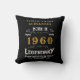 Für diejenigen, die 1960 geboren und ihren Geburtstag feiern, haben wir das ideale Geburtstagskissengeschenk. Der schwarze Hintergrund mit Vintagem Typografie-Design in Weiß und Gold ist schlicht und elegant mit Retro-Ambiente. Passen Sie den Text dieses Geburtstagsgeschenks mit der Vorlage einfach an. Mehr Geschenke und Party-Vorräte mit dem "Legendary"-Design im Laden erhältlich.