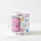 Ein personalisiertes Kaffeegenuss für ein Familienmitglied oder einen guten Freund. Wasserfarbene Schmetterlinge in hübschen Pastelltönen. Der Text wird einfach mit der bereitgestellten Vorlage bearbeitet.