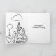 Diese Karte hat eine Hand gezeichnet whimsical hell bunte Dinosaurier und Blume, mit einem Ballon und Kuchen. Inside ist ein Bonus "Color Me" Seite.