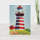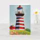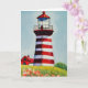 Ein rot-weiß gestreiftes Leuchtturm am Strand. Geburtstagskarte für Opa. Der Text kann personalisiert sein, um jeden Namen oder Familienmitglied zu sagen.