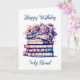 Wenn Sie eine Freundin haben, die Lieben und Lesen macht, dann ist dies die perfekte Geburtstagskarte für sie! Ein Stapel antiker Bücher und einige hübsche, rosa Blume, mit denen Sie den Text nach außen oder innen personalisieren können.