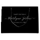 Die schlichte und dennoch elegante Geschenktasche ist mit einem schwarzen Hintergrund, einem skurrilen Drehbuch und einem klassischen Serifenfass-Schriftart versehen. Personalisieren Sie dieses Design mit Ihrem eigenen Text, Namen und Geburtsdatum. Passen Sie dieses Design weiter an, indem Sie den Link "Weiter anpassen" unter dem Vorlagenbereich personalisieren.