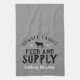 Rustikale Imitate Grainsack FÜTTRE & SUPPLY Küchentücher personalisiert mit Ihrem Familiennamen, Zuhause Stadt, feststehendem Datum oder anderen benutzerdefinierten Text. Bitte beachten Sie, dass die subtile Hintergrundtextur der Burpons Teil des bedruckten Designs ist und das Produkt nicht aus echtem Bestückungsmaterial besteht. Klicken Sie auf die Schaltfläche "Anpassen", um Ihren eigenen Text und Ihre eigenen Fotos hinzuzufügen, um ein einzigartiges Design zu erstellen. Die perfekte Touch für Ihre moderne Bauernküche!