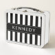 Personalisierter gestreifter Schwarzweiss-lunchbox Metall Lunch Box
