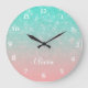 Personalisierter Girl-Mint-Rosa-Glitzer Glam Ombre Große Wanduhr