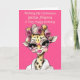 Bringen Sie einen Hauch von Glanz und Persönlichkeit in jede Feier mit dieser Personalisierten glamourösen Giraffen-Klapkarte. Mit einer stilvollen, modischen Giraffe mit Lockenwicklern im Haar und perfektem Make-up in kräftigen, stilvollen Farben ist diese Karte perfekt für jeden, der ein bisschen Whimsy mit seinem Glamour liebt.