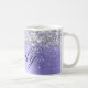 Girly Imitats funkelnd silberner Glitzer auf einem bläulich lila Randwinkel Metallic-Folie digitale Kunstgrafik. Passen Sie den extravaganten klassischen Kalligraphie-Schriftart Stil, Größe, Farbe und Schattenfarbe an, um Ihre eigene Kaffeetasse zu kreieren. Eine klassische, elegante Kalligraphie auf modernen digitalen Kunstwerken, die wie ein Foto druckt.