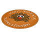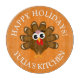 Rundes Glasschneidenbrett des personalisierten glücklichen die Erntedank-Türkei-Tagesfeiertags. Lustiger Vogel-Cartoon mit individuellem Namen und Gruß. Ornage oder kundenspezifischer Farbhintergrund. Niedliche Küchenzusätze für Freunde und Familie. Spaßabendessen-Party-Geschenkidee für Kochskochmamma, Vati, Mutter, Schwester, Bruder, Tante, Großmutter etc. Auch nett für Familien-Wiedersehen oder -Ansammlung.