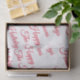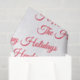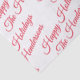 Dieses festliche Papier in Rot und Weiß ist mit Happy Holidays oder Ihrer eigenen Urlaubsbotschaft und Ihrem Namen personalisiert und macht es zu einer wunderbaren Ergänzung zu einem Geschenk. Es wäre ideal, nur ein Blatt zu einer Geschenktasche mit schlichtem Rot- oder Weißpapier hinzuzufügen.
