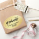 Grosser ovaler Aufkleber ist die perfekte Form für einen Abschluss Aufkleber. Der Graduate ist in einem großen, modernen Script-Schriftart geschrieben. Der Name des Absolventen ist in einem dekorativen Schriftart geschrieben, um es wirklich herauszuheben. Die Klasse 2018 und die Schule ist inbegriffen.