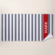 Auffallendes Strandhandtuch mit Cabana-Streifen mit blau, rot und weiß gestreiften Mustern. Personalisieren Sie mit Ihrem Namen.