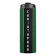 Stilvoll dunkelgrüner Thermotumbler mit zwei dünnen weißen Streifen und einem breiten, senkrechten schwarzen Streifen in der Mitte mit individuelle Name darauf.