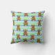 Personalisiertes, grünes und blau gestreiftes Baby's Name Teddy Bären Kissen.