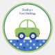 Personalisiertes Green und Blue Car First Birthday Classic Round Sticker.