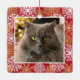 Dieses Weihnachtsschmuck erlaubt es Ihnen, ein individuelles Foto Ihres Haustiers mit einem Hintergrund festlicher Winterschneeflocken auf rotem Hintergrund hinzuzufügen. Feiern Sie das erste Weihnachtsfest Ihres Hauses oder lassen Sie sich mit diesem hübschen Ornament für immer von sich träumen.