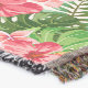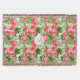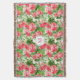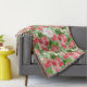 Personalisierter Werfer-Decke: Klassisches und feines, nahtloses Muster, bestehend aus Blume und Blätter aus rotem Hibiskus auf hellem Hintergrund. Maßgeschneidertes Monogramm in weißer Rundform. Vergiss nicht die ganze Sammlung.