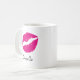 Heller, hellrosa Lippenstift-Druck mit modernem kalligrafischem personalisierten Text. Rosa, schwarz-weiße Kaffeetasse. Sie können Ihre eigene Lippenstift-Farbe wählen. Sie können einen anderen Schriftart-Stil oder eine andere Farbe wählen. Erstellen Sie Ihre eigene personalisierte mädchenhafte Tasse für sie. Erstellen Sie ein Dankeschön für die Brautmädchen bei Ihrer Hochzeit. Schönheitssalon Promo Geschenk.