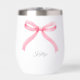 Personalisierter Junggeselinnen-Abschied Gefallen Stemless Thermal Wine Tumbler mit einem einfachen rosa Coquette Bogen.