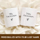 Feiern Sie Liebe und Neuanfänge mit diesem personalisierten Becher mit dem Nachnamen des frischvermählten Paares, einem bedeutungsvollen Erinnerungsstück, das für Paare konzipiert wurde, die ihr gemeinsames Leben beginnen. Mit romantischen Aufdrucken wie Ehefrau und Ehemann oder spaßigen Wifey und Hubby ist dieser Becher ein durchdachtes und stilvolles Geschenk für Verlobungen und Hochzeiten. Dieser personalisierte Keramikbecher zur Verlobung ist perfekt als Hochzeitsgeschenk für Paare, ein süßes Geschenk für Frischvermählte oder sogar als lustige Ergänzung zu Geschenken für den Junggesellinnenabschied. Passen Sie ihn mit dem neuen gemeinsamen Nachnamen des Paares, dem Hochzeitsdatum oder einem besonderen Titel an, um ein einzigartiges Erinnerungsstück zu schaffen, das sie jeden Morgen schätzen werden. Perfekt für
