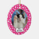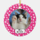 Niedliches personalisiertes Foto-Ornament mit einem Fischbein- und Pappmuster in weiß & rosa. Fügen Sie einfach den Namen und das Foto Ihres Tieres hinzu und Sie sind alle Set zu gehen.