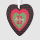 Holiday Folk Art, entworfen mit hübschen roten Herzen auf einem schwarzen Hintergrund, verfügt über ein großes dualfarbenes Herz-Design in der Mitte, zeigt Ihre oder Ihre Liebsten Monogramm und Namen. Auch wunderbar mit dem Monogramm Ihres Tieres, und Name. Auf der Rückseite, ein passendes rotes Herz "Tattoo" hält "Christmas 20xx".