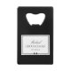 Feiern Sie Ihren Trauzeuge mit diesem schlanken, personalisierten Flaschenöffner. Mit einem klassischen Schwarz-Weiß-Design lässt sich dieser Raum mit einem Namen, einer Rolle und einem Hochzeitsdatum versehen, was ihn zu einem einzigartigen und praktischen Geschenk macht. Seine kompakte, Kreditkartengröße schleicht sich leicht in eine Tasche, perfekt für Toasts und Feiern während der Hochzeitsfestlichkeiten. Dieses raffinierte Accessoire verleiht jedem Event eine Touch von Eleganz und dient als zeitloser Sake für Ihren Trauzeuge, der lange nach dem großen Tag himmelt.