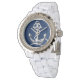 Personalisierte Kristall Uhr mit Silberanker. Fügen Sie Ihren Namen zu dieser nautischen Uhr hinzu oder verließ das Namensfeld leer, wenn Sie nur das Design benötigen. Die feminine, elegante Kristall-Uhr mit weißem Gurtband und nautischer Ankerwand.