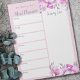 Pink floraler Notepad, den Sie mit Ihrem Namen oder Familiennamen personalisieren können. Sie können auch die Überschriften bearbeiten, die derzeit lesen Mehlplaner und Lebensmittelliste. Wenn Sie z.B. Day Plan und To Do List bevorzugen, ist die Vorlage so bereit, dass Sie sie sofort bearbeiten können. Dieses Notizblock hat einen wöchentlichen Planer auf jeder Seite, mit separaten Boxen für jeden Wochentag und einer großen Box für Ihre Einkaufsliste. Das Design hat einen rosa Hintergrund und hübsche Aquarellfarben-Blume, um Ihre Lebensmittelliste zu rahmen.